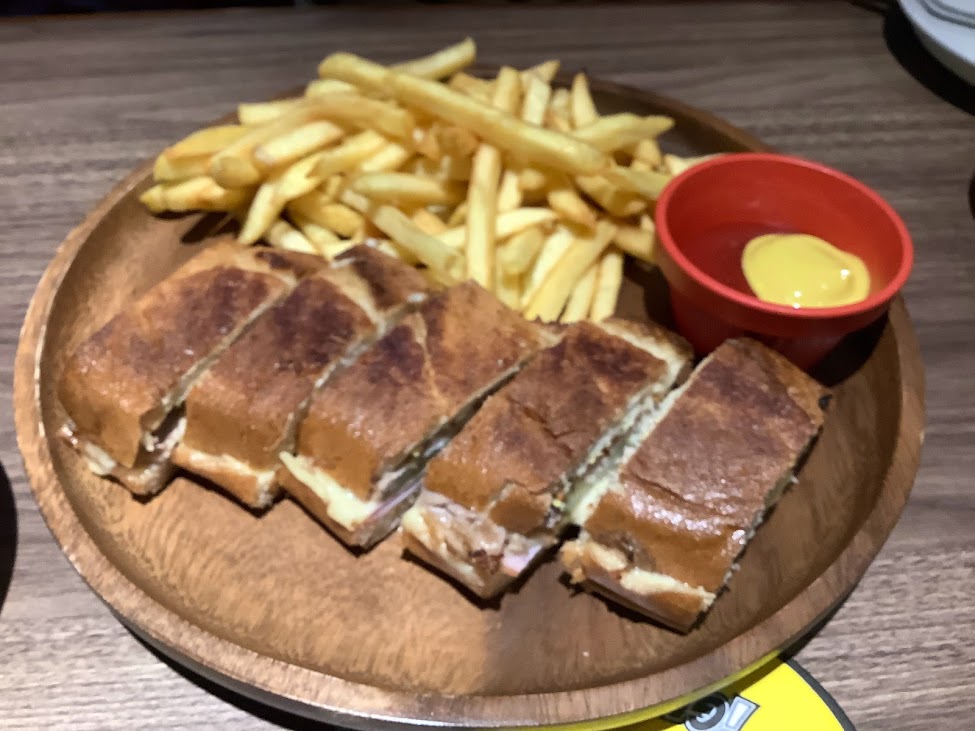 キューバサンドは初めて食べたけどめちゃ美味しかった。カリカリでクセになります。映画「シェフ」で見て以来、いつか食べてみたいと思ってたけどようやくご対面。これはリピ確定。
