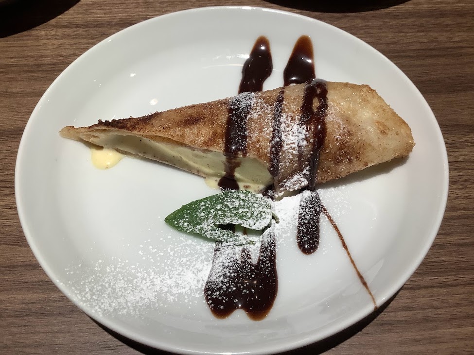 デザートはタコスの皮を使ったスイーツ。パティシエのお店で出てきそうな本格的なデザートでした。感服。