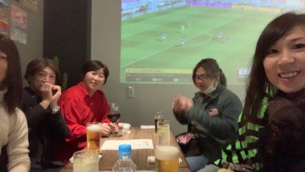 ちょうどワールドカップ、日本VSコスタリカ戦をやっていたので試合観戦も兼ねての飲み会でした。グスタにはモニター3台とプロジェクターがあり、どの席にいてもテレビが見れます😍