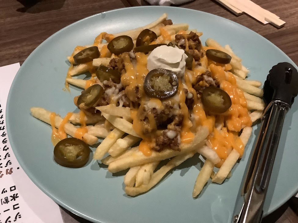 ハラペーニョとチーズがかかったフライドポテト。ビールに合います。