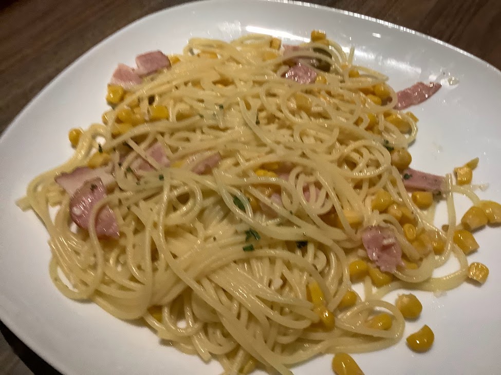 締めのパスタ。これを食べる頃にはサッカーの決着がついていた。日本、残念😗