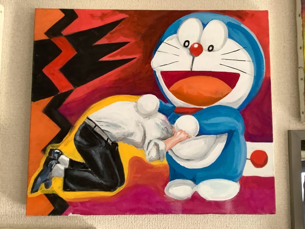【依存と逃避 INドラえもん】 アクリル画 F10キャンバス 60×50