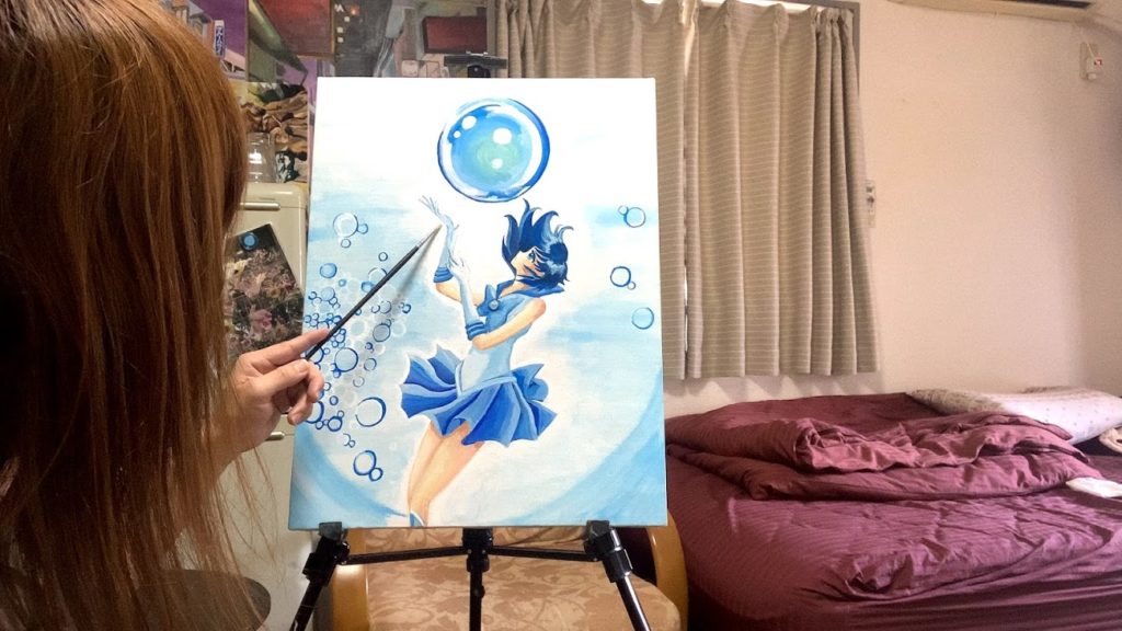 ご存知セーラーマーキュリー水野亜美。とにかく青い絵を描きたいと思った。