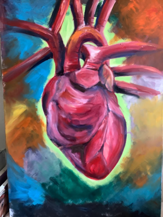 でかいキャンバスの前で何を描くか考えていたら、真っ先に心臓が浮かんだのでそのまま行くことに。