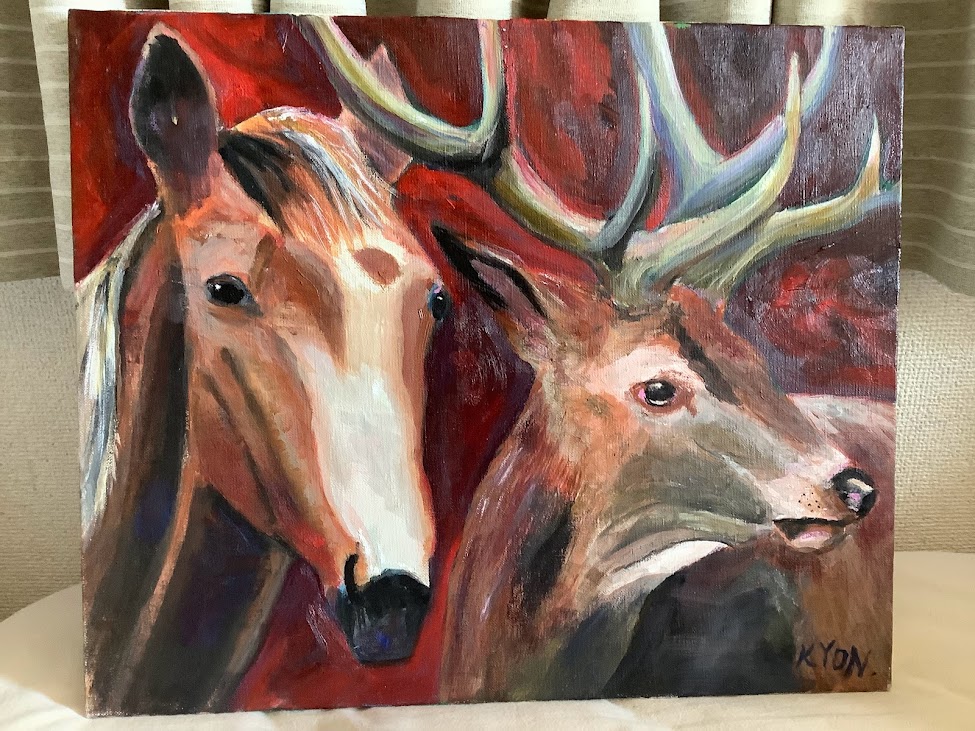 【馬と鹿】 油彩 F8キャンバス 45×38