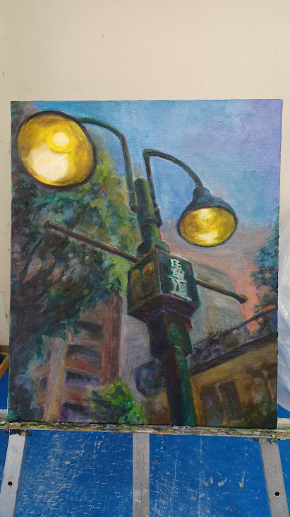 【馬車道の街頭】油彩 F8キャンバス 45×38