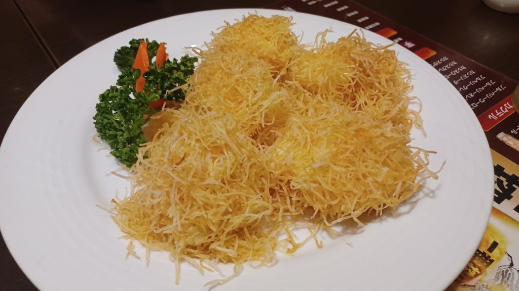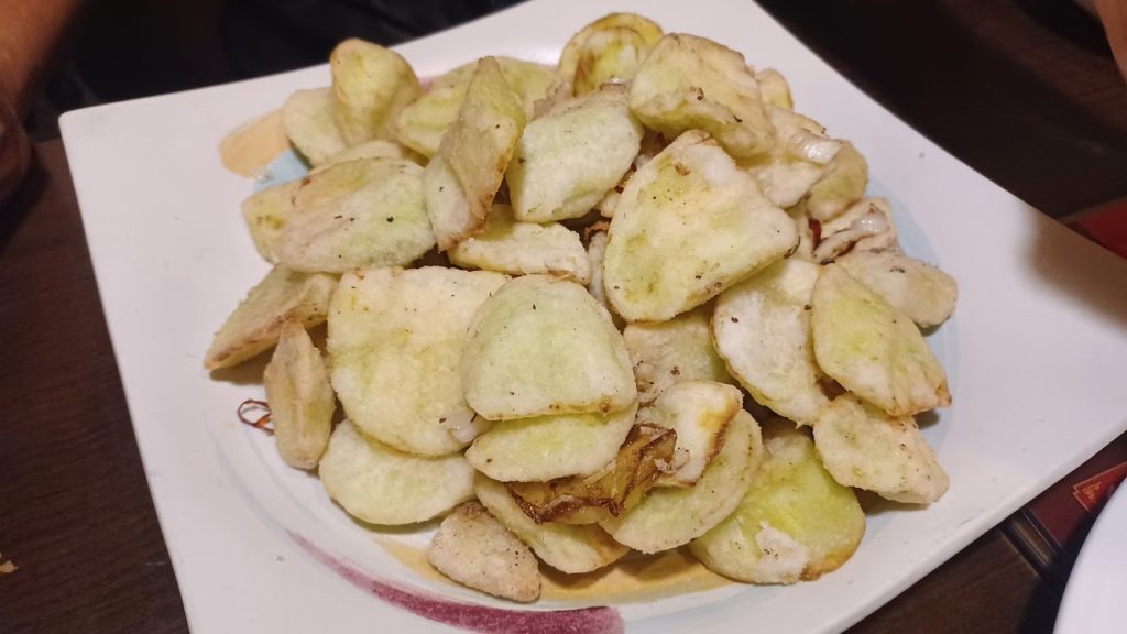 この謎の揚げ物が異常に美味かった❤️ポテトっぽいけど実はナス。