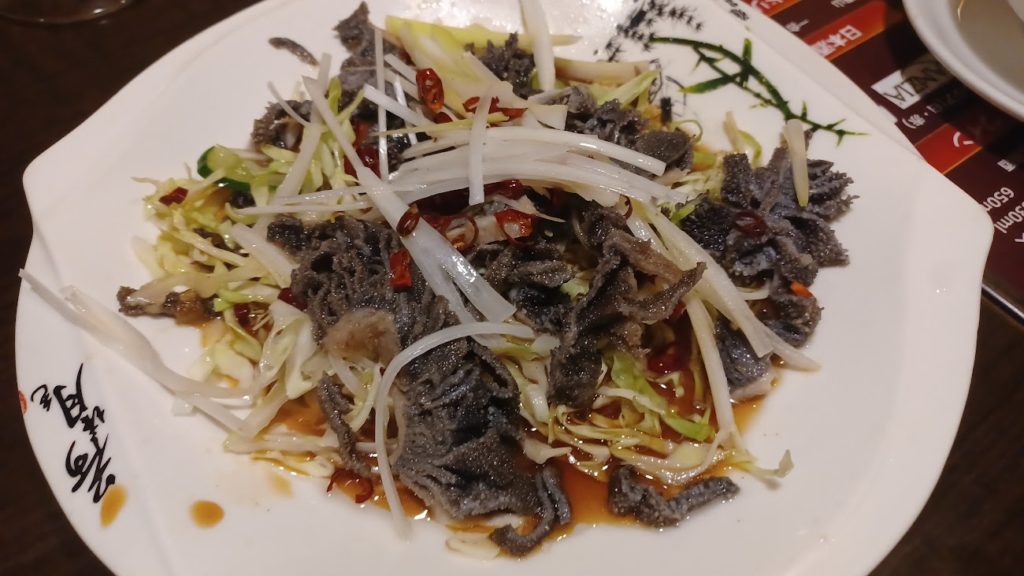 コースとは別の追加で珍味を注文。センマイ。これは牛の胃袋。見た目はエグいけど美味。