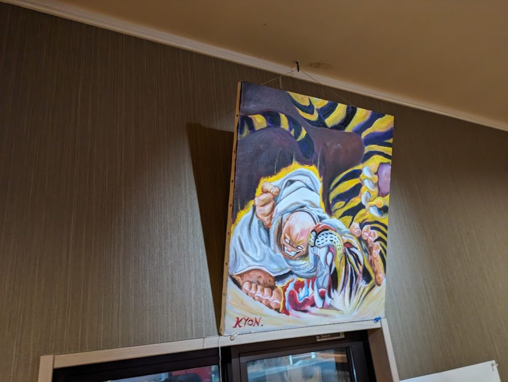 ここのお店にはわたしの描いた「虎殺愚地独歩」が飾ってあります。