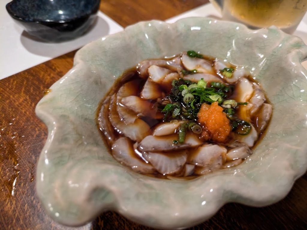 メイちゃん大好物のあん肝。これまで味わったことがないほどにクリーミーな食感。酒が進みます。