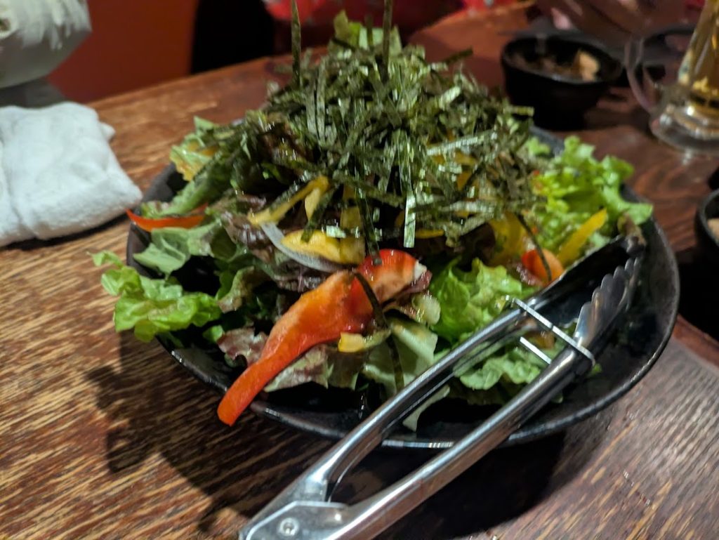 磯部揚げがきた。日本酒にちょうどいい。わたしは特別な訓練を受けているので、備え付けの塩だけで酒が飲める。